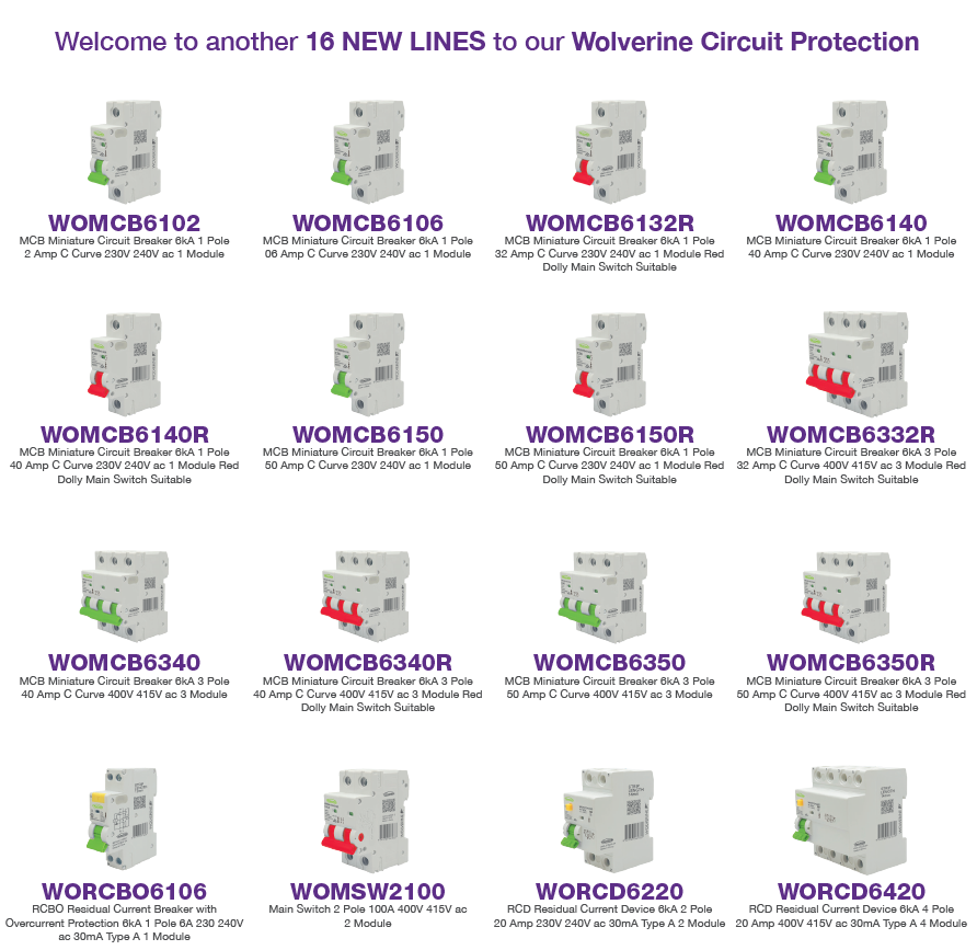 Welcome to another 16 NEW LINES to our Wolverine Circuit Protection range that we launched late last year.