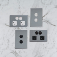Switches and sockets shouldn’t be an afterthought and can certainly enhance a space, just like our Snow Leopard range. This ‘glass look’ finish allows your customers to achieve a luxury, high end look but without the hefty price tag. Make a statement by installing a white double power point against a black splashback or vice versa. The Snow Leopard surround takes the glass look cover right to the wall, offering a seamless finish against the same colour surface.