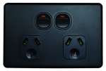 Leopard Black Socket with Brushed Aluminium Cover (LEPP2GBK + LEPP2GCBA) – Imagine a semi slim double power point in black with a cool brushed aluminium cover. No need to imagine, it’s possible by adding this modern style cover to a black Leopard socket.