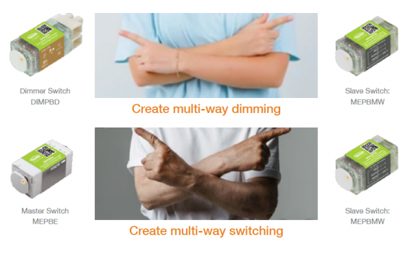 Best of all, you can create both multi-way dimming and switching combinations using the MEPBMWA as a ‘slave’ button.