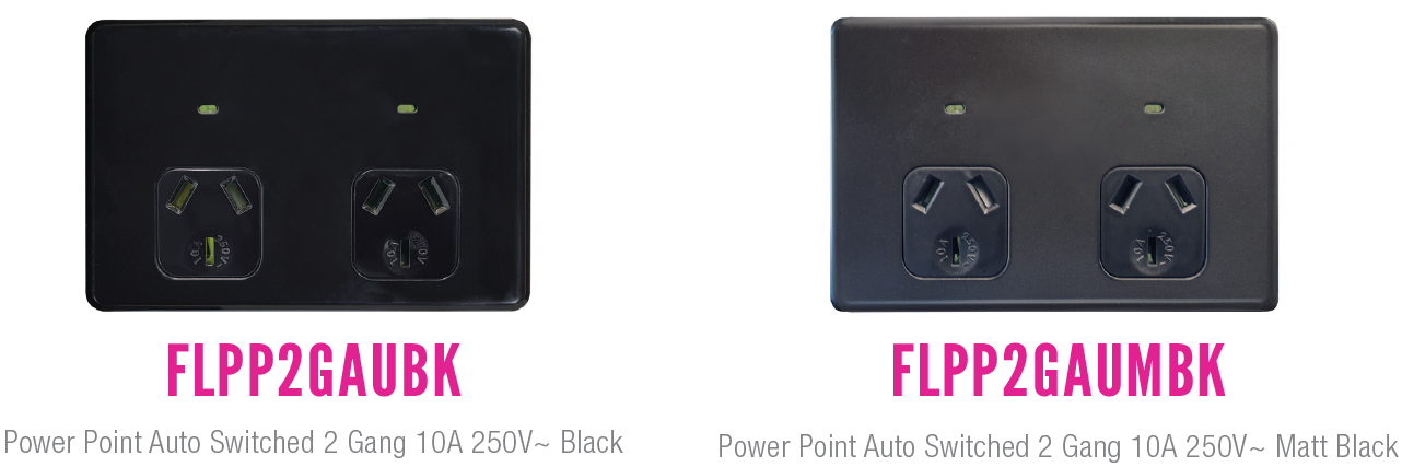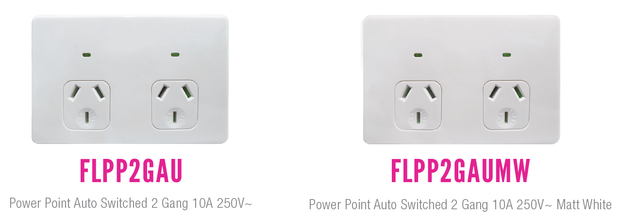 That’s how we feel about our new Flat Cat power points with auto-switched sockets. The switch is built-in and a warm white LED indicator turns on whenever a plug is inserted.