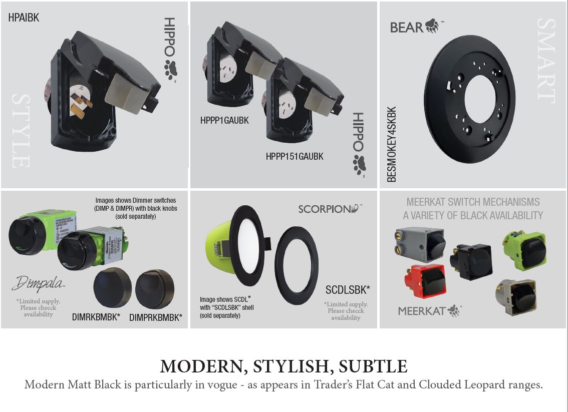 The market is crying out for black electrical accessories, and Trader’s range of black products continues to grow to meet the call.