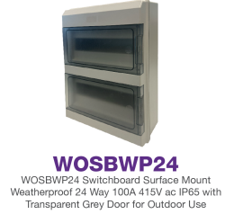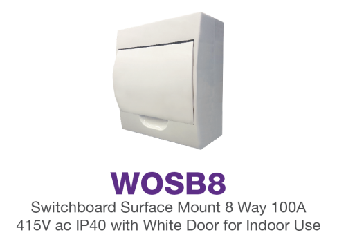 We have now added a new 8 way indoor switchboard to our Wolverine circuit protection range. Ultra compact (200mm w x 185mm h x 95mm d), WOSB8 is perfect for confined spaces or where space is a premium. Ready to install in townhouses, units, small offices, sheds and workshops.