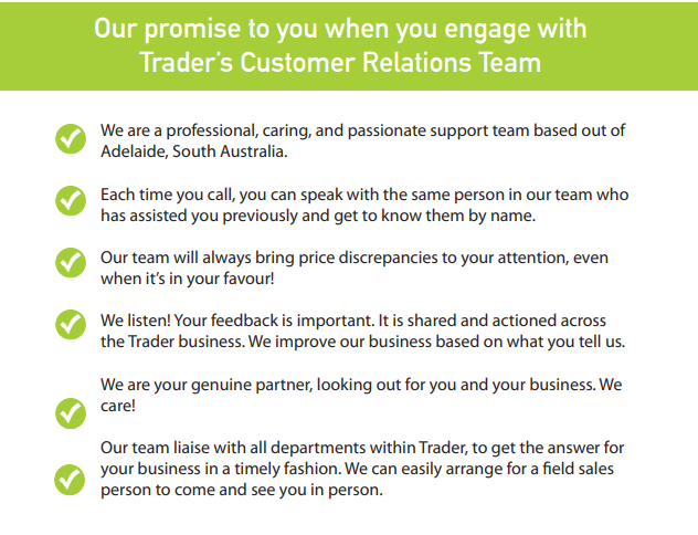 When you call us, you will always be greeted by a warm, caring, smiling person at the other end of the phone – no automated messages at Trader!