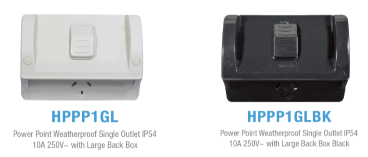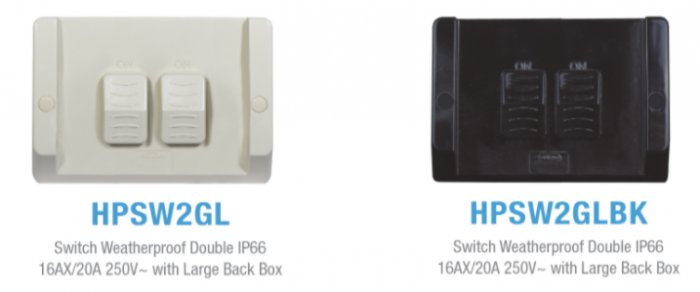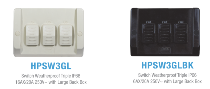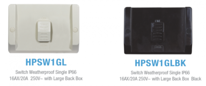 We have now added large switches and a large single power point to our Hippo weatherproof range.