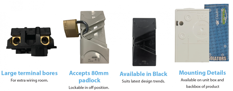 The Trader brand has been a real bonus to the electrical field. Especially, can I highlight the HYPP1GF (surface socket). These are perfect for retrofitting existing lighting where you pull out old downlights or changing over from a batten holder to downlight etc. The terminals are all in a row with a well thought insulation barrier which must be ‘clicked in’ before you can fit the base. Then there’s the ‘easy fit’ base. When I say easy fit, it’s easy to fit and to take off again should you need to. (hopefully no more screwdrivers through my hand trying to remove bottom plates etc). They easily fit through a normal downlight cut out, so you can work from a ladder instead of having to go in the roof, even with a few cables and cable ties attached etc. Circuit identification is becoming more and more important. Trader realise this and have added space on the front of the socket outlet to 2 – IPA labels visible even with a plug in the socket.