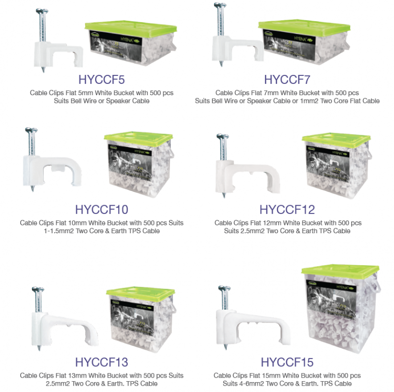 Clips are available in various size lengths and designed to suit everything from bell wire and speaker cable to 6mm Two Core & Earth TPC cable.