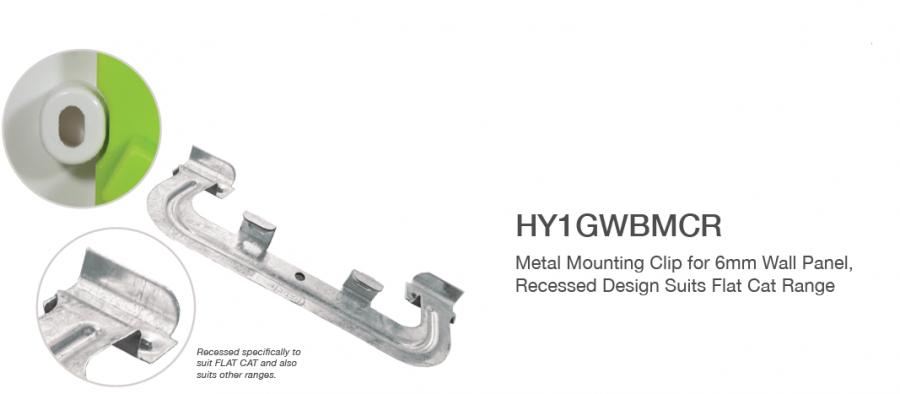 The HY1GWBMCR clip features standard 84mm mounting centres that have been recessed to accommodate Flat Cat’s recesses.