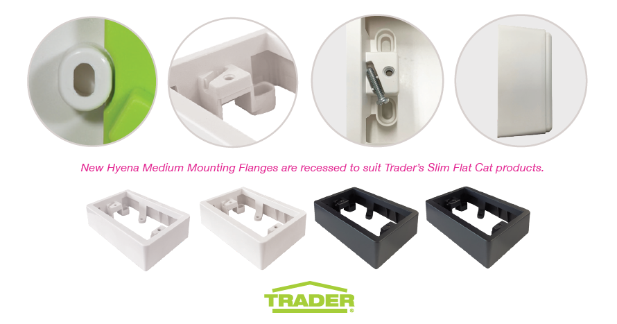 Relax, we’ve now added Hyena medium sized mounting flanges to suit our slim Flat Cat range. With recessed mounting centres and a depth of 34mm, you can now have plenty of wiring space just where you need it.