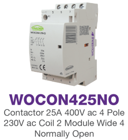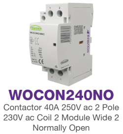 Designed to work in combination with our Wolverine circuit protection devices, amperages include 25A, 40A & 63A and are available in 2 pole and 4 pole with normally open contacts and 230V mains activated coils. Ready to go to work with large electrical motors, high amperage ovens, heating elements, commercial lighting, pumps and compressors.