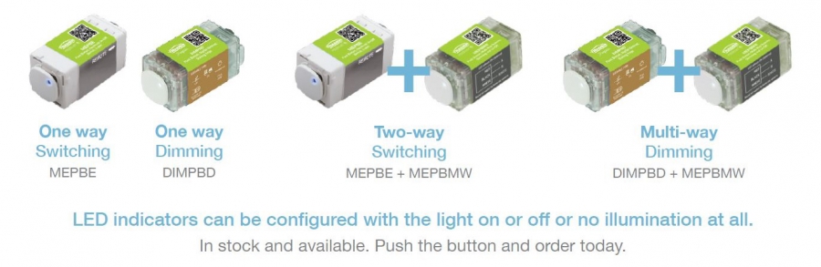 We can help you with One way switching, Two-way switching, One way dimming and even Multiway dimming. LED indicators can be configured with the light on or off or no illumination at all. Each push-button comes with a choice of standard black or white caps in the box. But we can even supply caps in matt white or black separately.