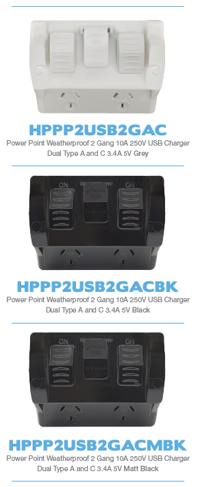 Great for charging the latest mobile phones in backyard areas, garden and workshop areas.