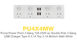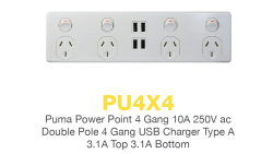 We’ve now added an extra switch version to our popular range of Puma 4 Gang Integrated USB Charger Power points.