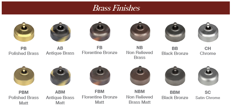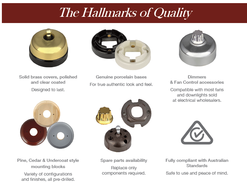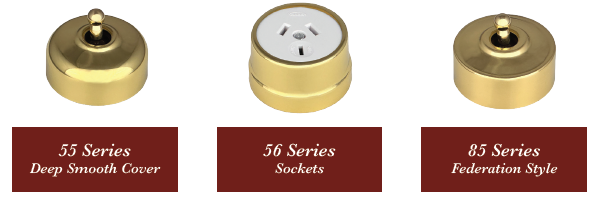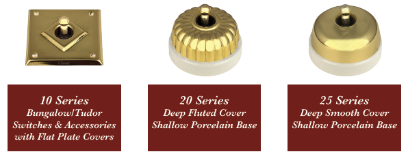 10 styles and 12 colours and finishes. Components include Trader switch