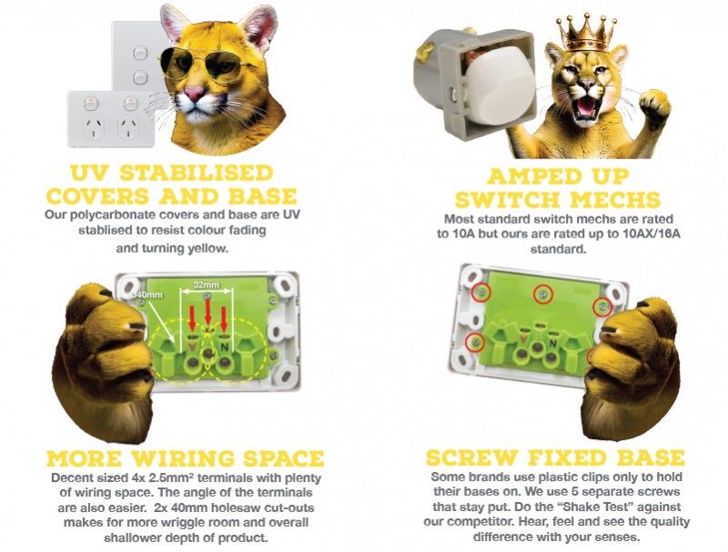 With fade resistant covers, fixed screw bases and 16A mechs as standard plus all backed by a 10 year warranty, Puma is just made better.