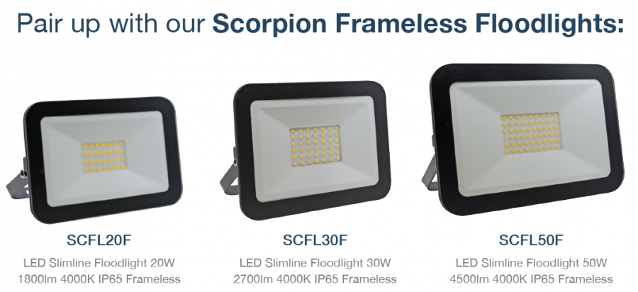 Now you can fit off our floodlights onto a corner install with our Scorpion SCFLMBA angled mounting bracket.