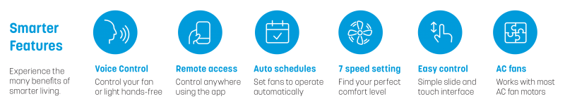 Take control with your phone, smart watch, voice control, or simply touch the switch.