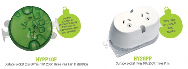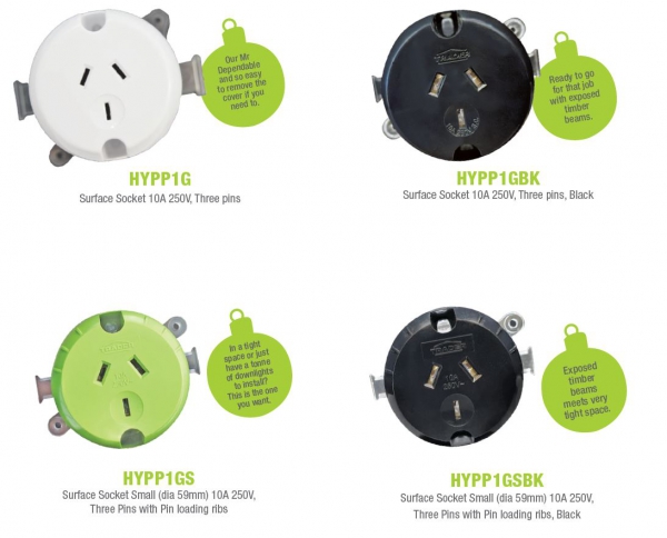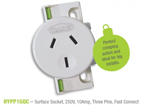 The Trader brand has been a real bonus to the electrical field. Especially, can I highlight the HYPP1GF (surface socket). These are perfect for retrofitting existing lighting where you pull out old downlights or changing over from a batten holder to downlight etc. The terminals are all in a row with a well thought insulation barrier which must be ‘clicked in’ before you can fit the base. Then there’s the ‘easy fit’ base. When I say easy fit, it’s easy to fit and to take off again should you need to. (hopefully no more screwdrivers through my hand trying to remove bottom plates etc). They easily fit through a normal downlight cut out, so you can work from a ladder instead of having to go in the roof, even with a few cables and cable ties attached etc. Circuit identification is becoming more and more important. Trader realise this and have added space on the front of the socket outlet to 2 – IPA labels visible even with a plug in the socket.