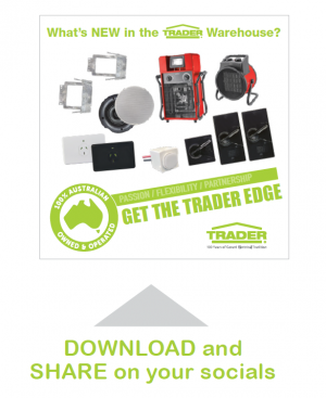 The Trader brand has been a real bonus to the electrical field. Especially, can I highlight the HYPP1GF (surface socket). These are perfect for retrofitting existing lighting where you pull out old downlights or changing over from a batten holder to downlight etc. The terminals are all in a row with a well thought insulation barrier which must be ‘clicked in’ before you can fit the base. Then there’s the ‘easy fit’ base. When I say easy fit, it’s easy to fit and to take off again should you need to. (hopefully no more screwdrivers through my hand trying to remove bottom plates etc). They easily fit through a normal downlight cut out, so you can work from a ladder instead of having to go in the roof, even with a few cables and cable ties attached etc. Circuit identification is becoming more and more important. Trader realise this and have added space on the front of the socket outlet to 2 – IPA labels visible even with a plug in the socket.