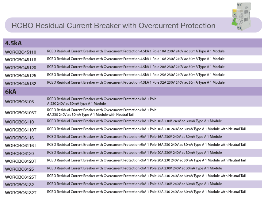 RCBOs are also Double Pole switched for complete isolation of faulty circuits.