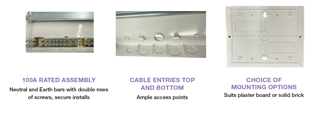 Each board has a 100A rated assembly, neutral link and parts pack with