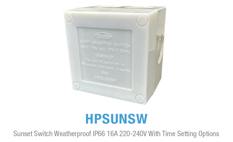 Light up any walkway, verandah, courtyard, car park or garden area automatically every night with the Hippo HPSUNSW Sunset Switch.