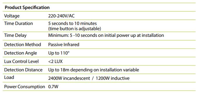 - 3 wire design (Active, Neutral, Sensor load) for greater reliability.