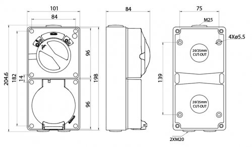 Buffalo offers an extensive range of IP66 rated Combination Switched Sockets that are available in three-pin 10A to 32A, four-pin 10A to 50A and five-pin 10A to 50A designs.