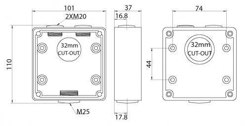 Buffalo - Enclosure Back Box Shallow 1 Gang With 25mm & 2 x 20mm Entries