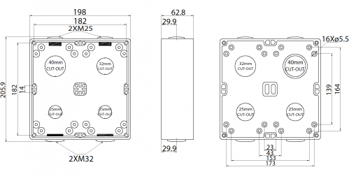 - Back Boxes and Junction Boxes supplied with Reducers and Screw Caps.