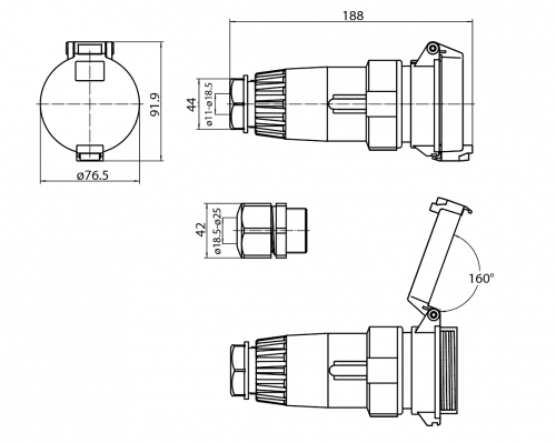 • Size 2 Extension Sockets 32A, 40A and 50A accept cables from ø 11-25mm