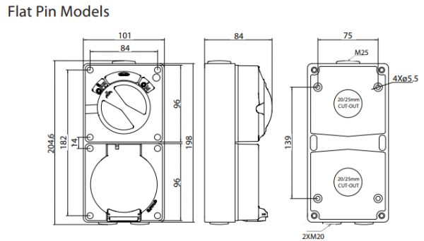 Combination sockets feature a clear dustproof & hoseproof flap allowing simple viewing of sockets. The flap is also provided with a reliable spring-tensioned latch to keep dust & liquids out.