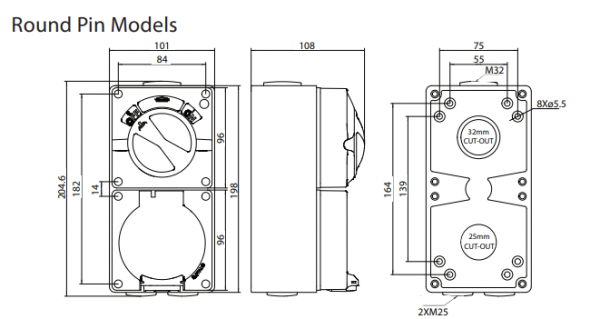 Buffalo offers an extensive range of IP66 rated Combination Switched Sockets that are available in three-pin 10A to 32A, four-pin 10A to 50A and five-pin 10A to 50A designs.