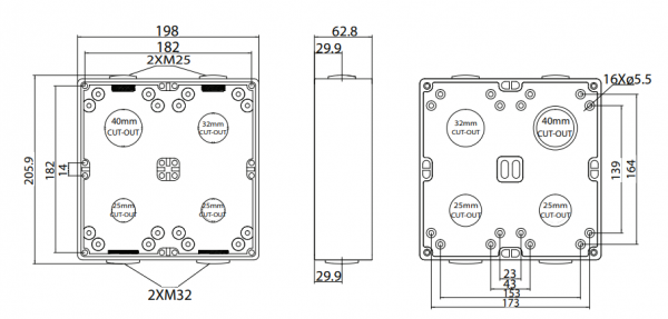 - Bridges provided used for cable management and to aid IP rating.
