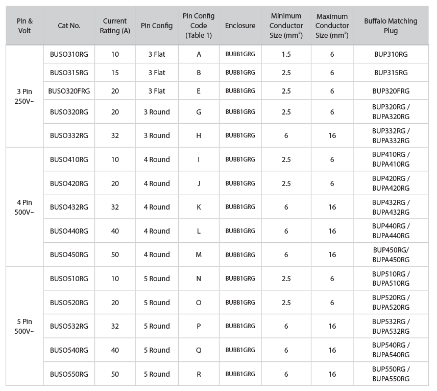 The Socket components used in Buffalo Combinations are also available as individual Socket Outlets for use in relevant applications.