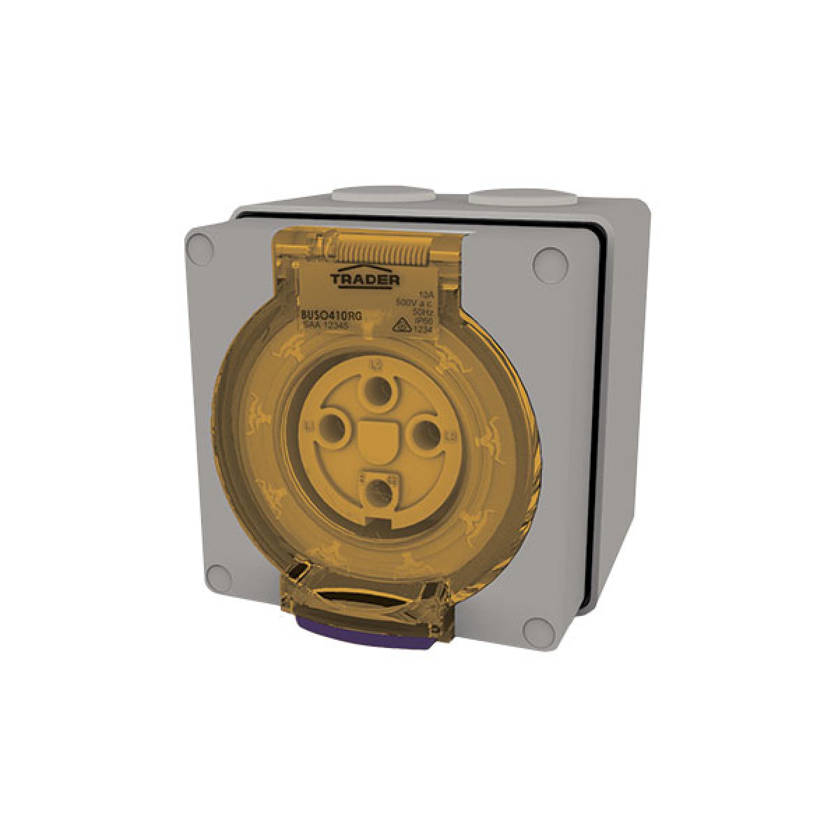 Trader Buffalo Socket Outlet IP66 10A 500V ac 4 Round Pin Chemical Resistant Grey