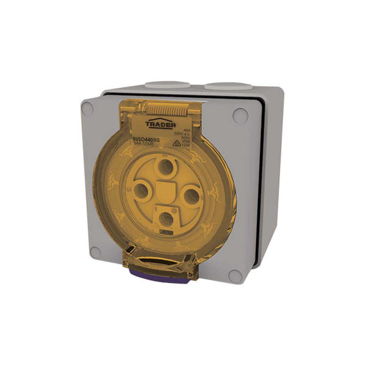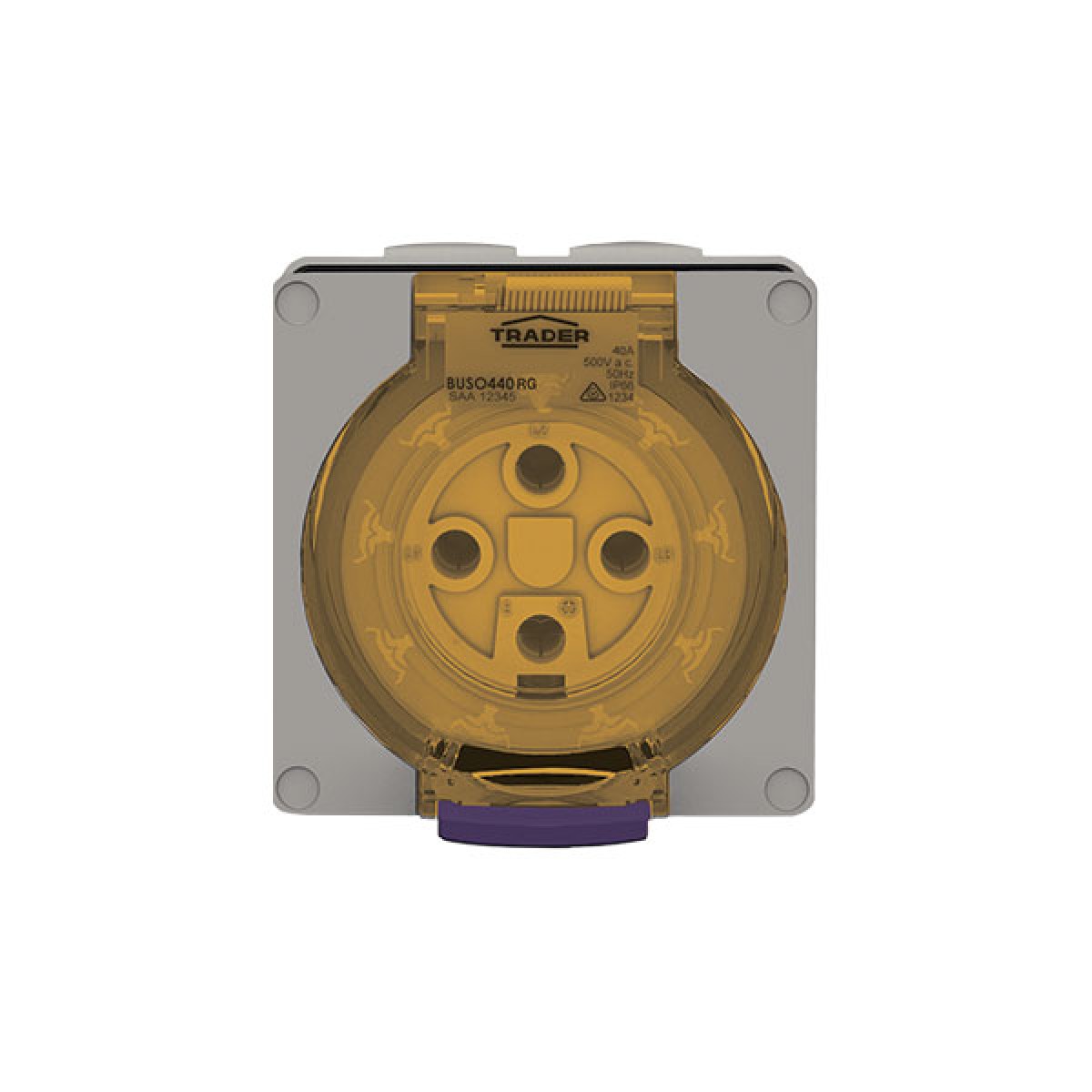 Trader Buffalo Socket Outlet IP66 40A 500V ac 4 Round Pin Chemical Resistant Grey