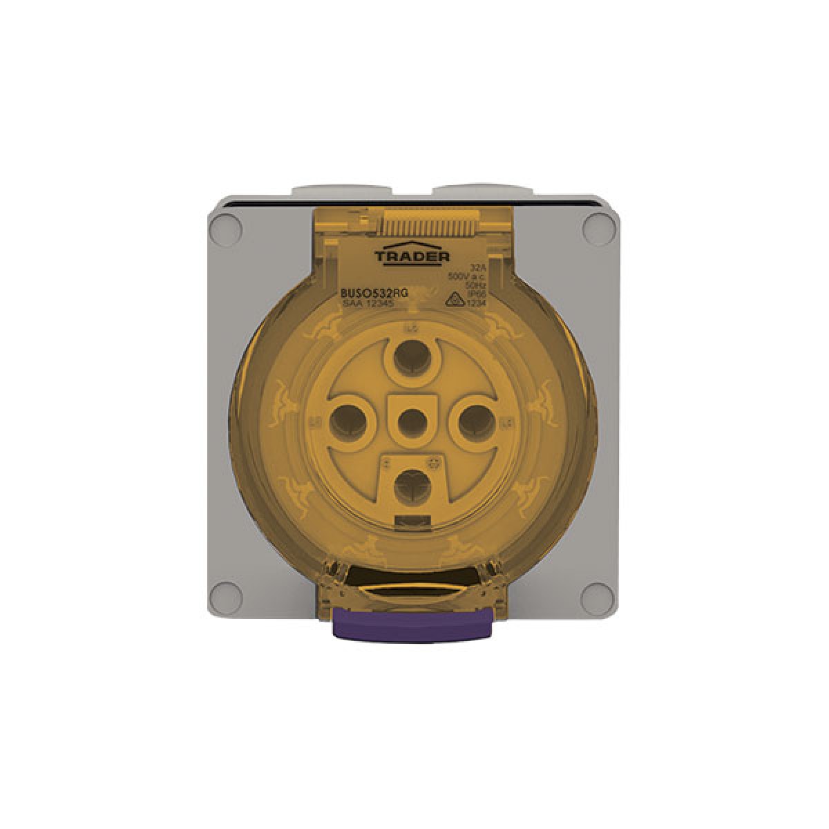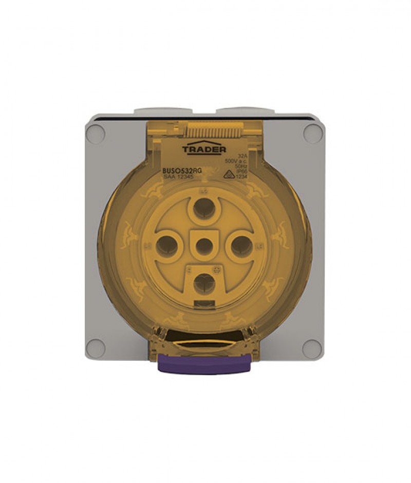Trader Buffalo Socket Outlet IP66 32A 500V ac 5 Round Pin Chemical Resistant Grey