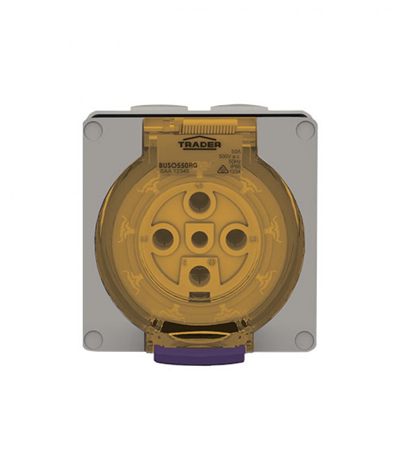 Trader Buffalo Socket Outlet IP66 50A 500V ac 5 Round Pin Chemical Resistant Grey