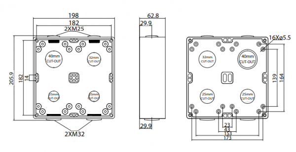 - Bridges provided used for cable management and to aid IP rating.