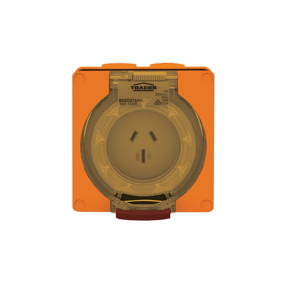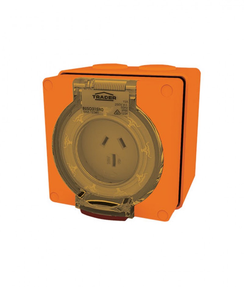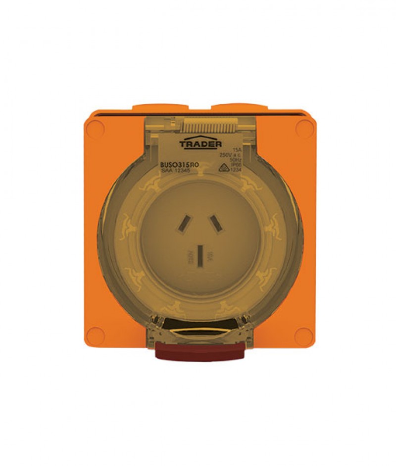 Trader Buffalo Socket Outlet IP66 15A 250V ac 3 Flat Pin Chemical Resistant Orange