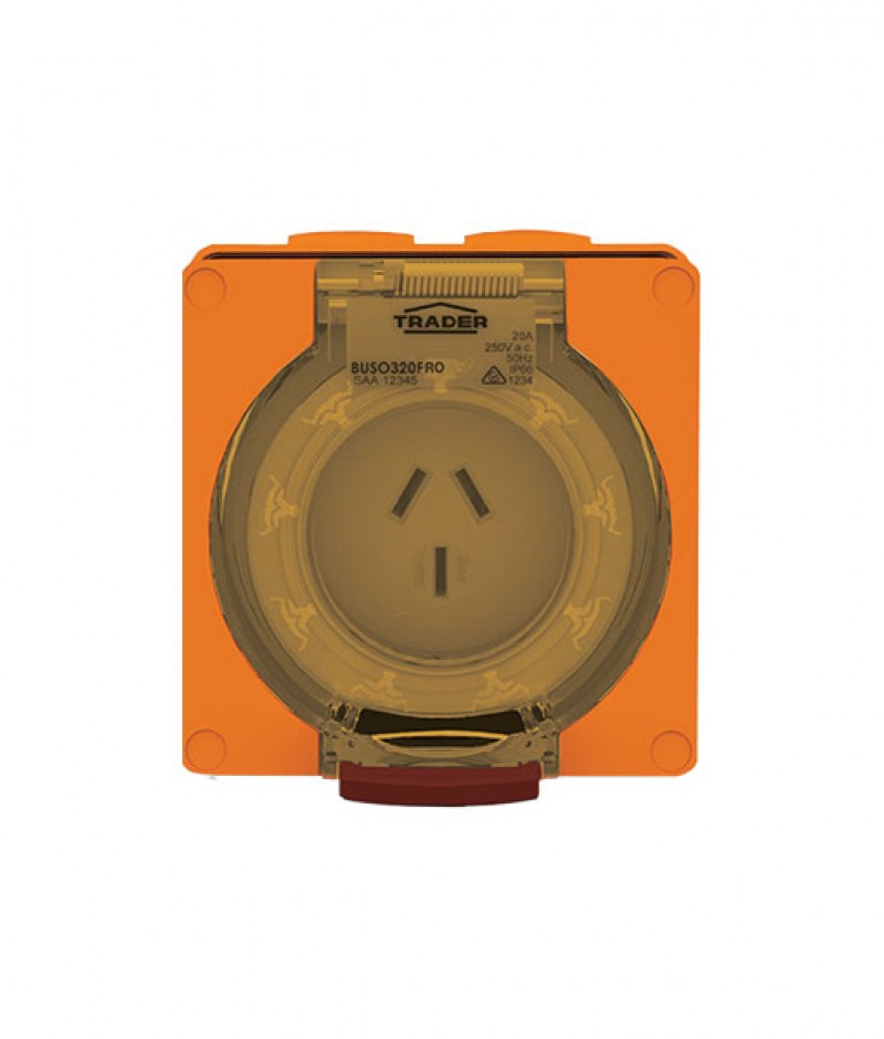 Trader Buffalo Socket Outlet IP66 20A 250V ac 3 Flat Pin Chemical Resistant Orange