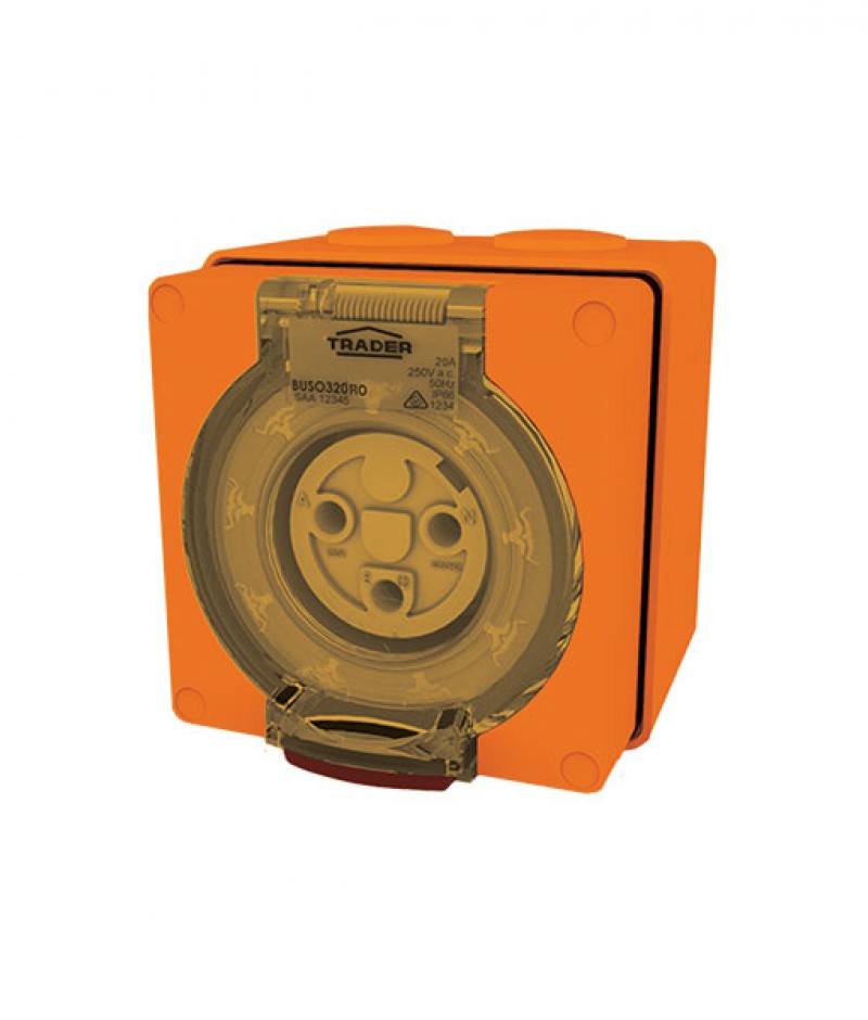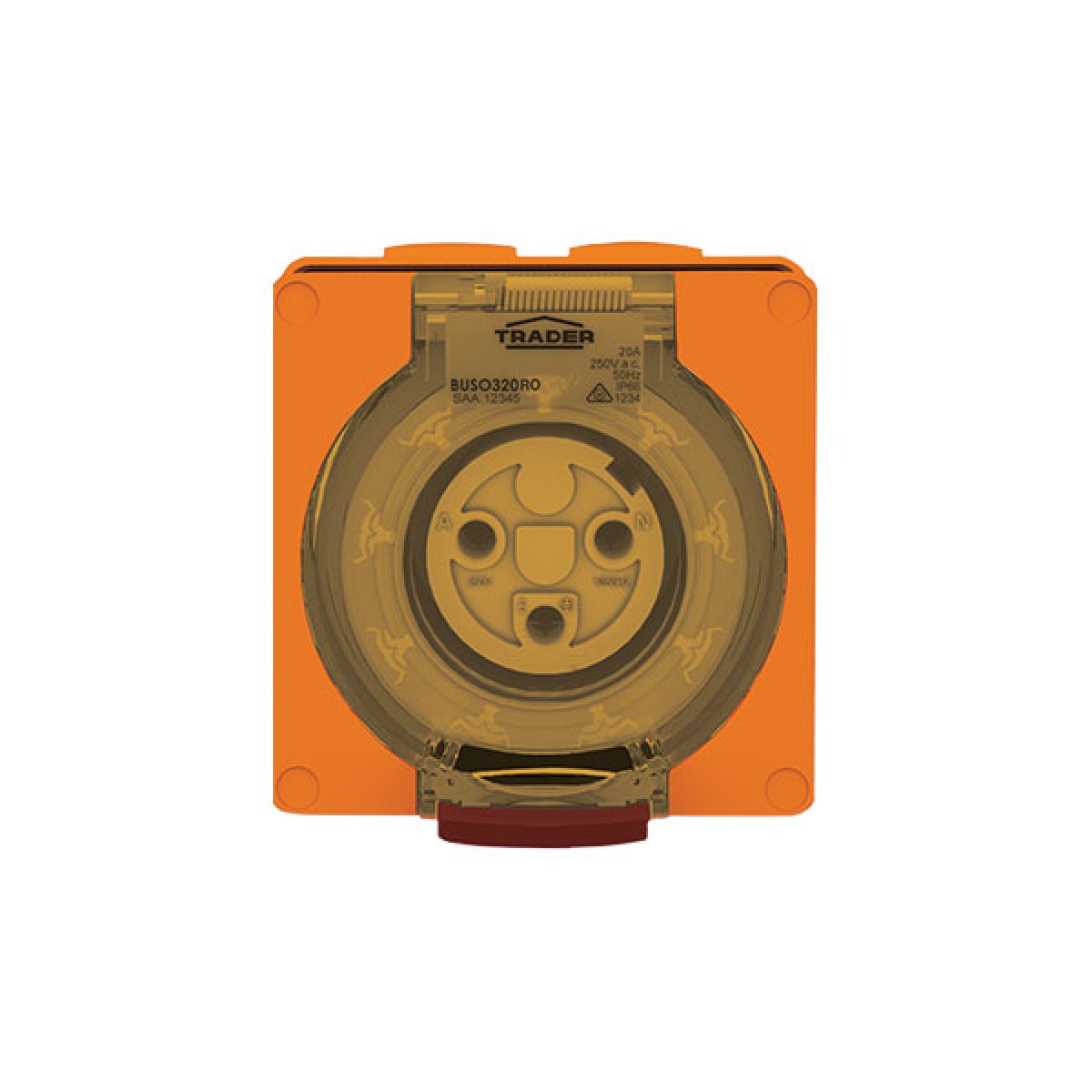 Trader Buffalo Socket Outlet IP66 20A 250V ac 3 Round Pin Chemical Resistant Orange