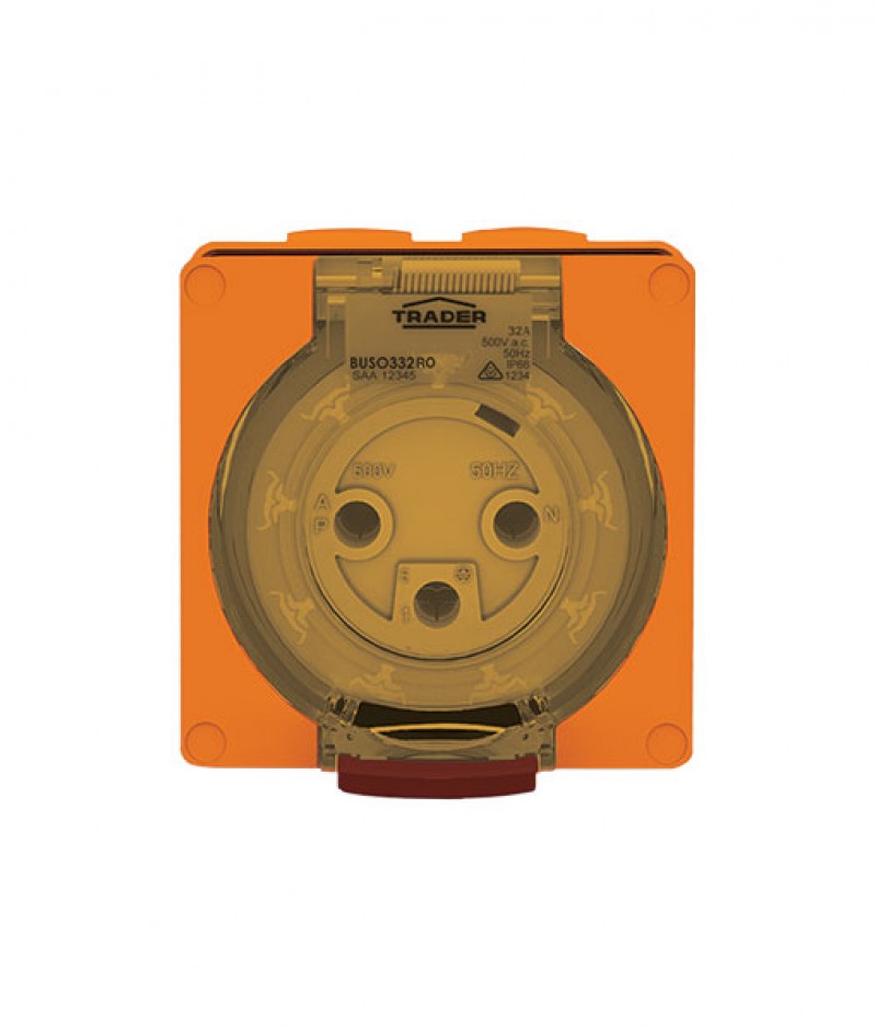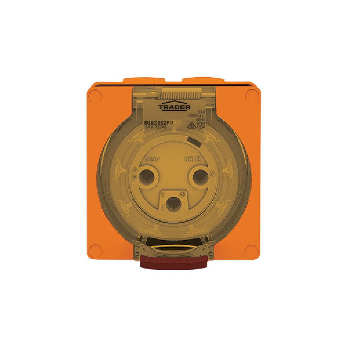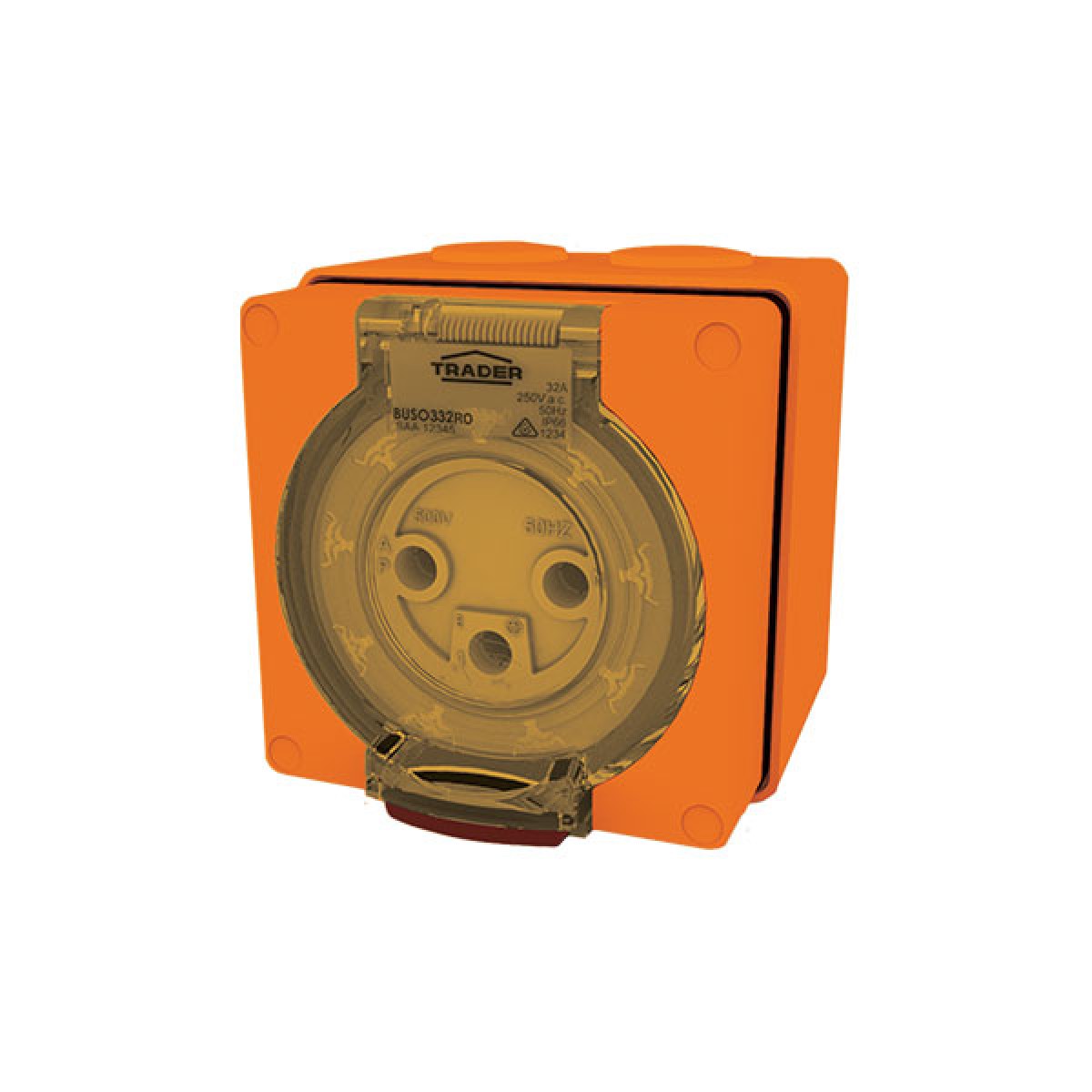 Trader Buffalo Socket Outlet IP66 32A 250V ac 3 Round Pin Chemical Resistant Orange