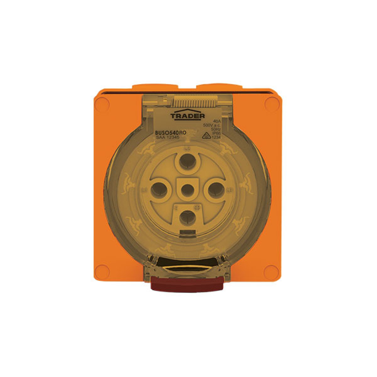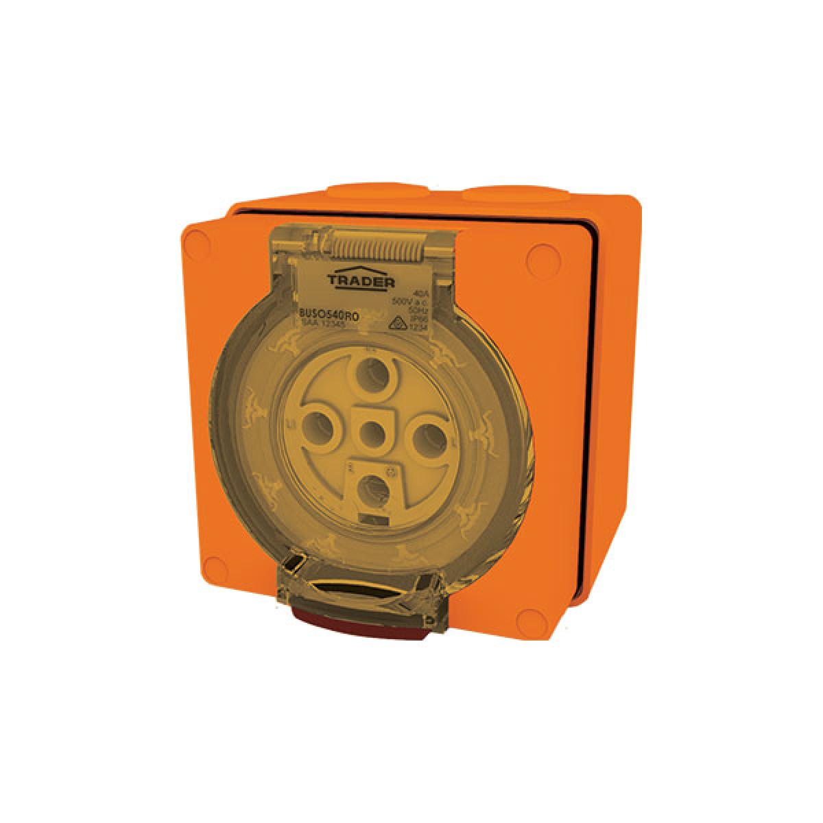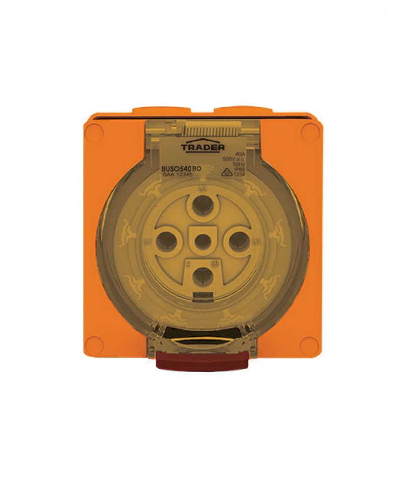 Trader Buffalo Socket Outlet IP66 40A 500V ac 5 Round Pin Chemical Resistant Orange