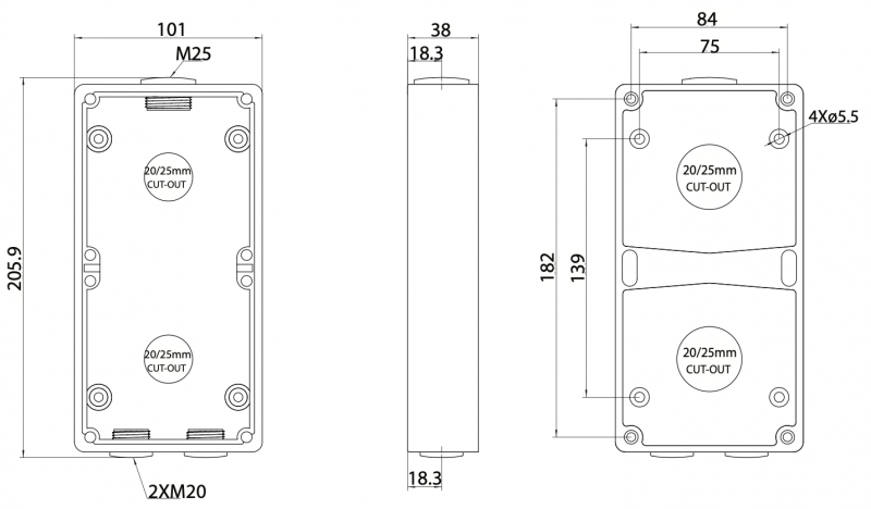• Bridges provided used for cable management and to aid IP rating.