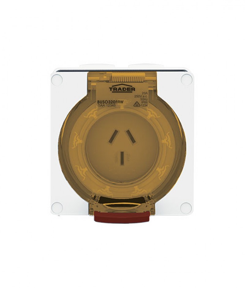 Trader Buffalo Socket Outlet IP66 20A 250V ac 3 Flat Pin Chemical Resistant White