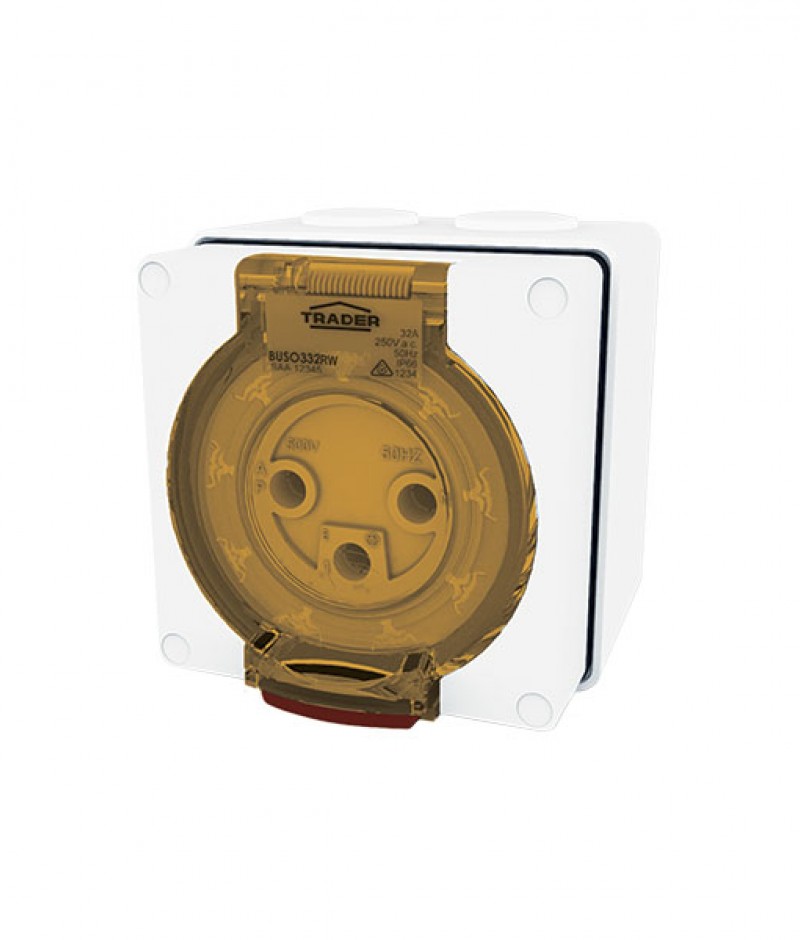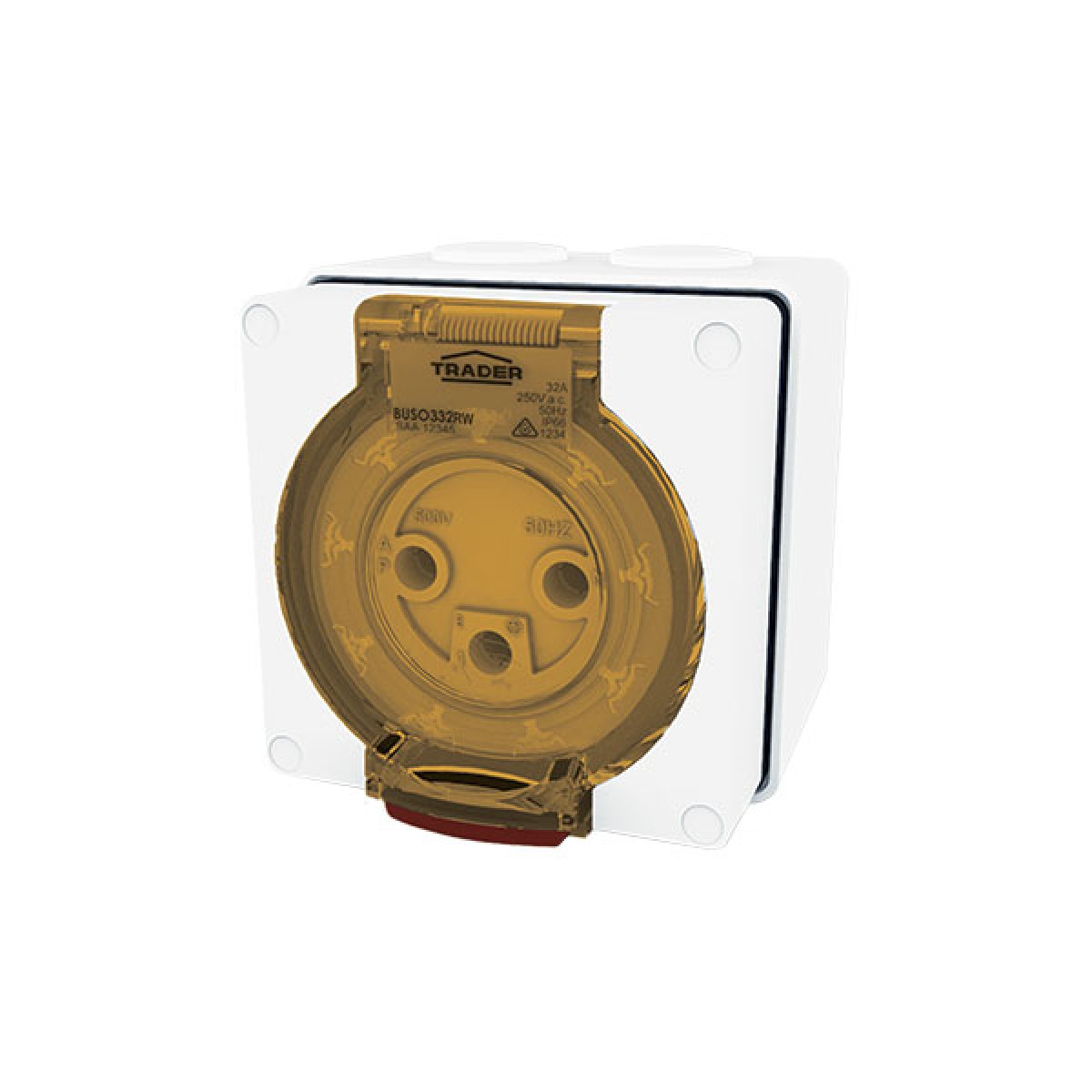 Trader Buffalo Socket Outlet IP66 32A 250V ac 3 Round Pin Chemical Resistant White