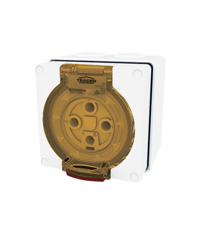 Trader Buffalo Socket Outlet IP66 32A 500V ac 4 Round Pin Chemical Resistant White