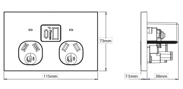 - The USB circuit is integrated with the socket outlet and connected internall so only one set of terminals are required for the electrician to wire the device.